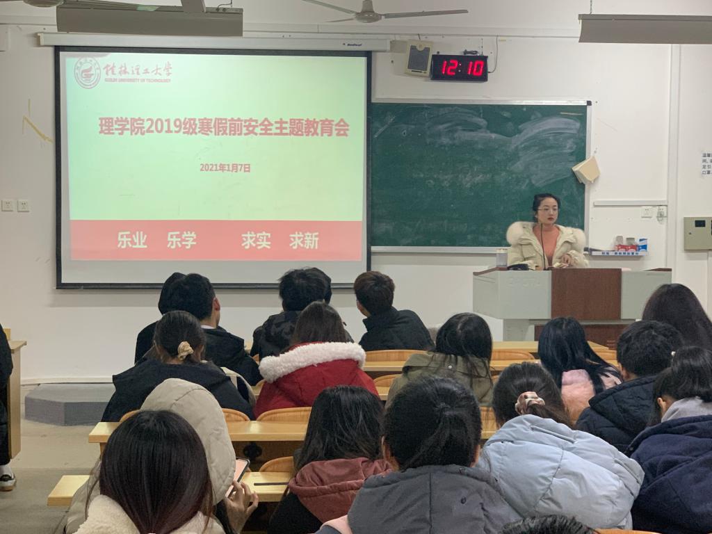 2021年1月7日中午,我院于05-311教室召开了2019级寒假前主题安全教育会议。会议由年级辅导员彭娇娇老师主持,何桂福老师及2019级全体班委参加会议。