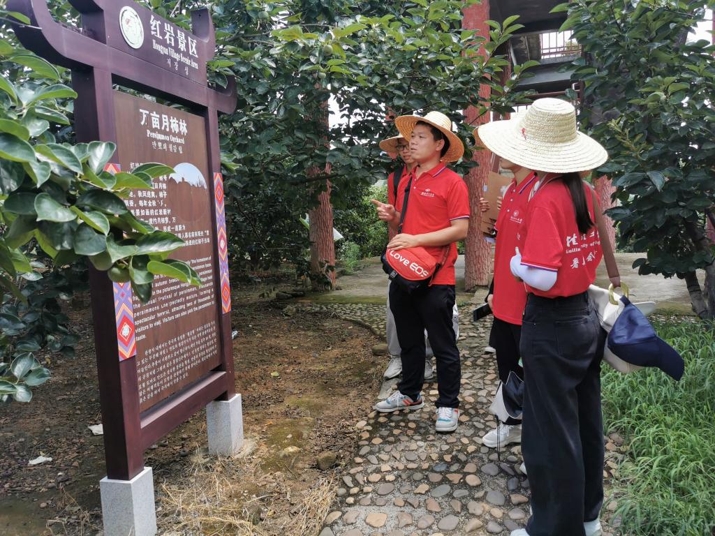 在此次活动中,实践团队首先来到村委会,听村委为团队成员讲述了红岩村发展的故事,详细介绍了红岩村“瑶韵柿香”田园综合体项目的规划与实现程度,并解答了团队成员对乡村振兴中所遇到困难等问题。在村委的指引下,实践团队参观了柿子产业园、万亩月柿林、中国柿子博览园、月柿文化广场等重点产业,实地了解了产业发展实况。实践团队也以红岩村作为问卷调查的主要地点,顶着炎炎烈日,行走在田间地头、村头巷尾,通过挨家挨户的走访调查、发放问卷,对红岩村村民的生活现状与当地田园综合项目落实实况有了更深入的了解。
