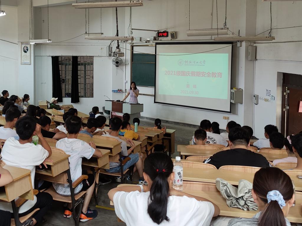 各年级辅导员以大学生成长成才教育课、主题班团例会、主题年级会的形式组织学生进行了假期安全知识学习。在相关主题的学习会上,辅导员们从假期请假手续、假期日常管理安排、假期疫情防控措施等方面介绍了学校和学院的相关管理政策,强调假期期间学生非必要不离桂,且须严格按照防疫政策做好防护和核酸检测。在假期期间,班委会成员要做好“日汇报”“零汇报”等工作,外出短途游玩时要提高安全意识,严守交通规则,不去江河湖泊游泳。与此同时,我院学工队伍全体成员还充分运用新媒体渠道进行安全教育,在微信公众号、易班网、QQ空间、QQ群等网络阵地开展了形式多样的宣传。