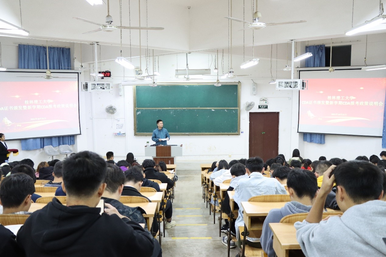 10月21日晚,我院于雁山校区07119教室举办CDA证书颁发暨新学期CDA报考政策说明会。出席本次讲座的有CDA数据分析研究院华南区院校合作总监尹其斐经理、CDA数据分析研究院华南区院校合作经理程圆,CDA数据分析研究院华南区院校咨询经理魏海、理学院团委副书记舒强及理学院部分学生。