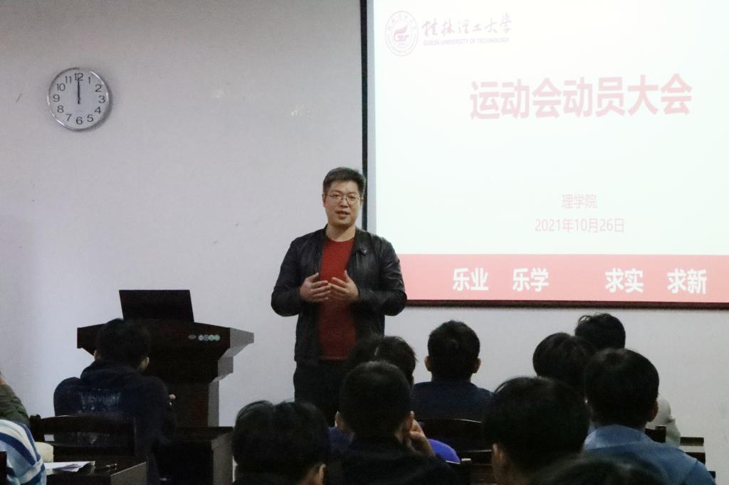 为激发全院运动员为我院争光的积极热情,继续在运动会上保持佳绩。10月26日中午,我院于07122会议室举办第五十届校运会动员大会。动员大会由院党委副书记钟立军主持,全体理学院运动员参会。