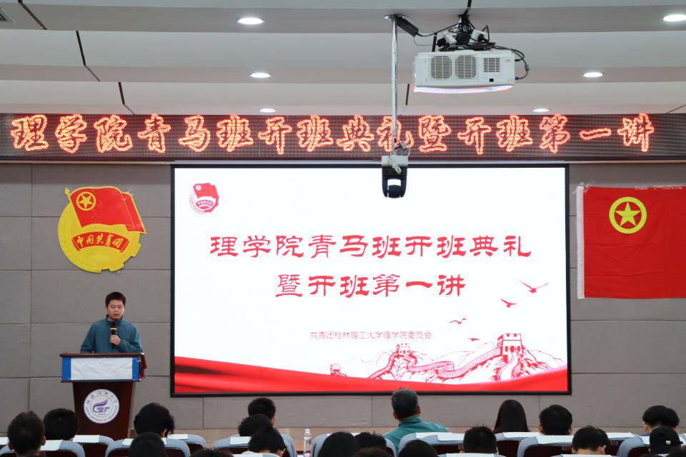 伴随着共青团团歌,开班仪式正式拉开帷幕,全体成员起立,共同奏唱共青团团歌。接着,舒老师宣读了本次培训班的方案,学生代表廖文同学介绍了本期培训的考核方案。最后,钟老师强调开展青年马克思主义者培养工程的重要意义,明确提出作为学生骨干,要做好自己的本职工作,为同学们提供良好的服务,要将青马班短期集中培训和长期自我学习相结合,不断丰富和完善自身的知识体系。开班仪式后,学院党委副书记钟立军为大家带来首场专题培训《学生干部领导力提升与路径》。