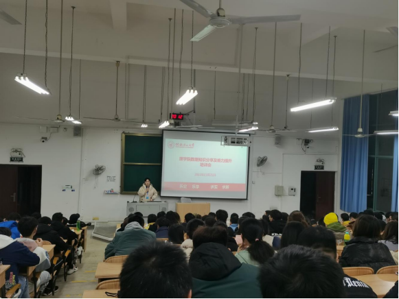 培训会议主要结合年级和专业特点围绕数模、物理实验、市场调研等专业比赛,期末考试备考、专业重点、难点课程等专业学习以及学习与工作的平衡与收获等等来进行展开。