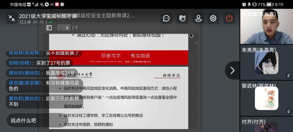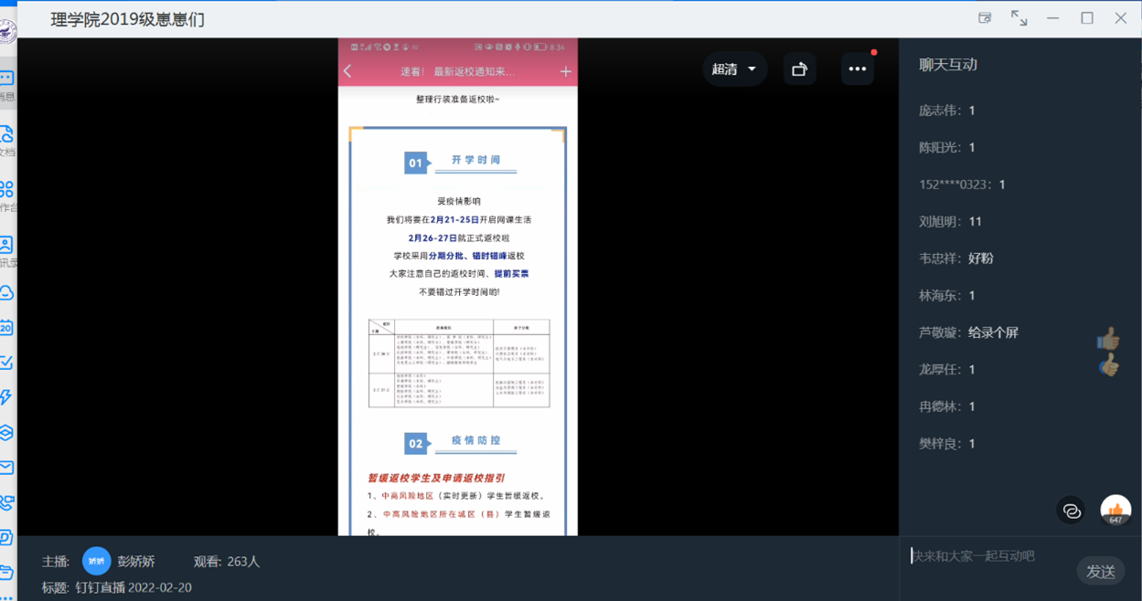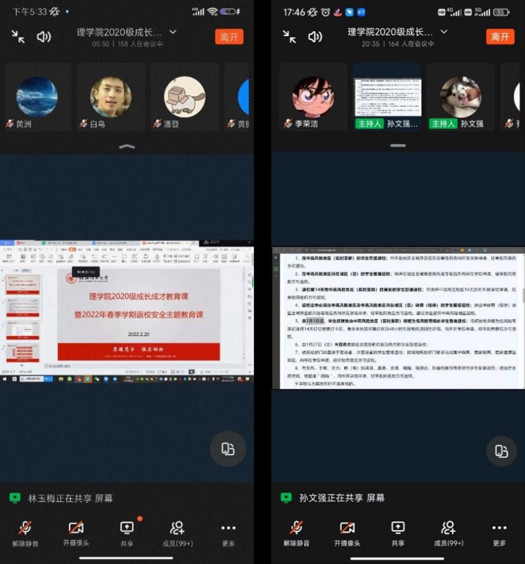 本次课程向理学院同学们及时宣传了返校政策,督促学生在家认真上网课,为接下来的返校工作的正常开展和疫情防控作出了较好地铺垫。