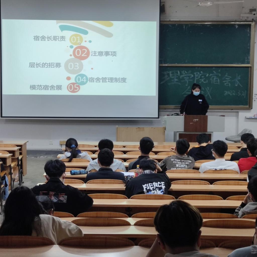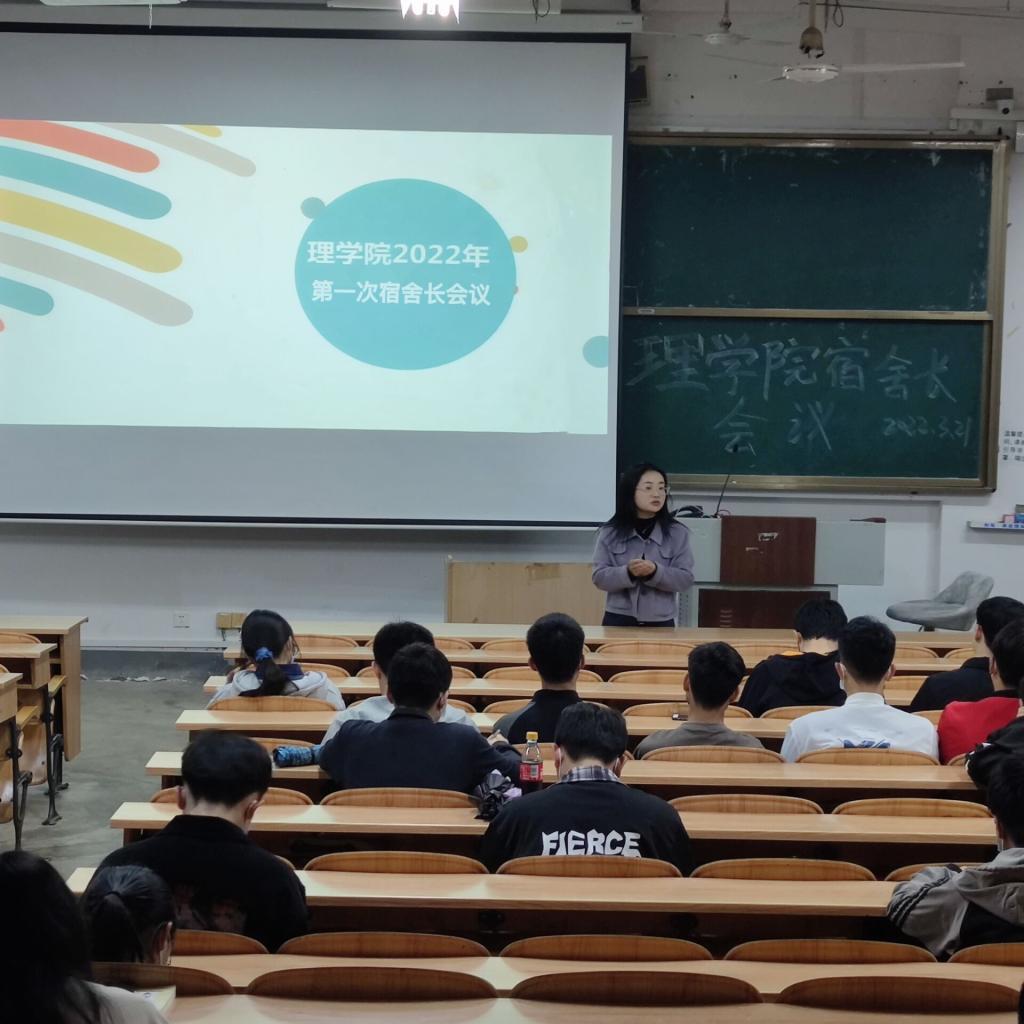 为认真贯彻落实上级有关部门关于宿舍安全管理的文件和指示精神,确保学院宿舍管理安全稳定,切实落实好学生宿舍“一周一抽查、一月一联查”隐患排查制度。3月21日晚,理学院宿舍管理委员会于六栋06105教室召开了2022年春季学期第一次宿舍长例会。本次会议由理学院宿舍管理委员会指导老师彭娇娇主持,理学院全体宿舍长参加了本次会议。