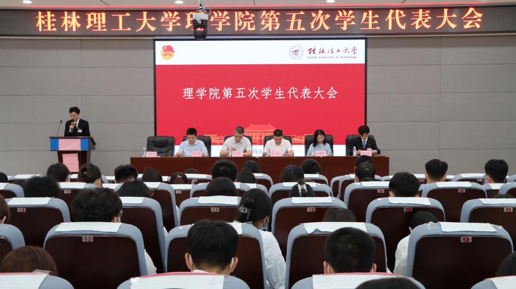 6月19日下午,我院在雁山校区01501报告厅召开理学院第五次学生代表大会,学院党委副书记钟立军老师、校团委庞腾老师、学院团委副书记(主持工作)舒强老师、学院彭娇娇老师和校学生会主席团成员晁佳宣等嘉宾出席本次大会,大会由学院陈昶宇同学主持,学院123名学生代表参加了本次大会。