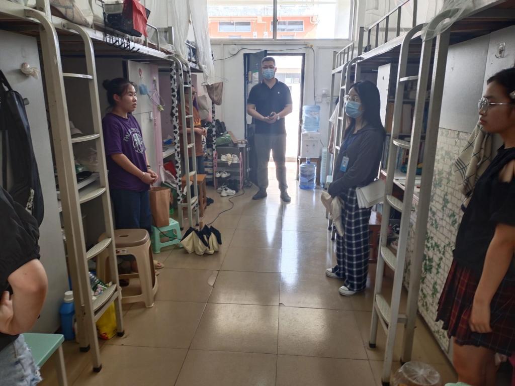 学生返校期间,理学院党委副书记钟立军与各年级辅导员通过宿舍走访的形式,关注学生的思想动态,了解学生的需求,并通过实地宣传返校后防疫政策要求和宿舍安全注意事项,进一步做好理学院新学期开学安全稳定工作,助力学生扣好新学期“第一粒扣子”。