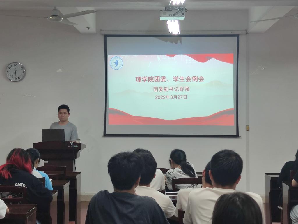 为了更好地促进各部门之间的配合,提高团委、学生会成员的工作积极性和工作效率,我院于3月27日晚,在雁山校区07122教室开展了第五周理学院团委、学生会全体例会。本次例会由团学组织主席团成员于超奇主持,理学院团委副书记舒强和团学组织全体成员参加本次例会。