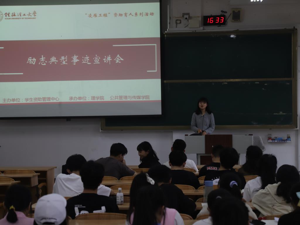 为进一步推动资助育人工作的开展,我院于5月24日在雁山校区06206教室开展凌雁工程系列活动之百名励志典型事迹宣讲会,我院学生资助工作负责老师马亚博和励志学生代表出席本次活动,理学院雁山校区学生代表参加宣讲会。