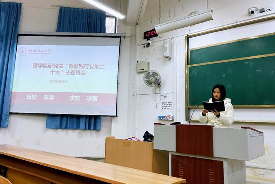 为深入学习与贯彻党的二十大精神,展现理学院研究生们新学期的精神风貌,明确新学期的发展方向,引领理学院研究生们在新征程上坚定不移听党话、跟党走,立志成为新时代的好青年,3月3日,理学院全体研究生在07119教室开展了“青春践行党的二十大”主题班会。理学院研究生辅导员李彩云老师和理学院全体研究生参加了班会活动。