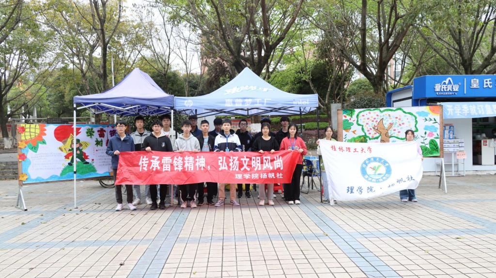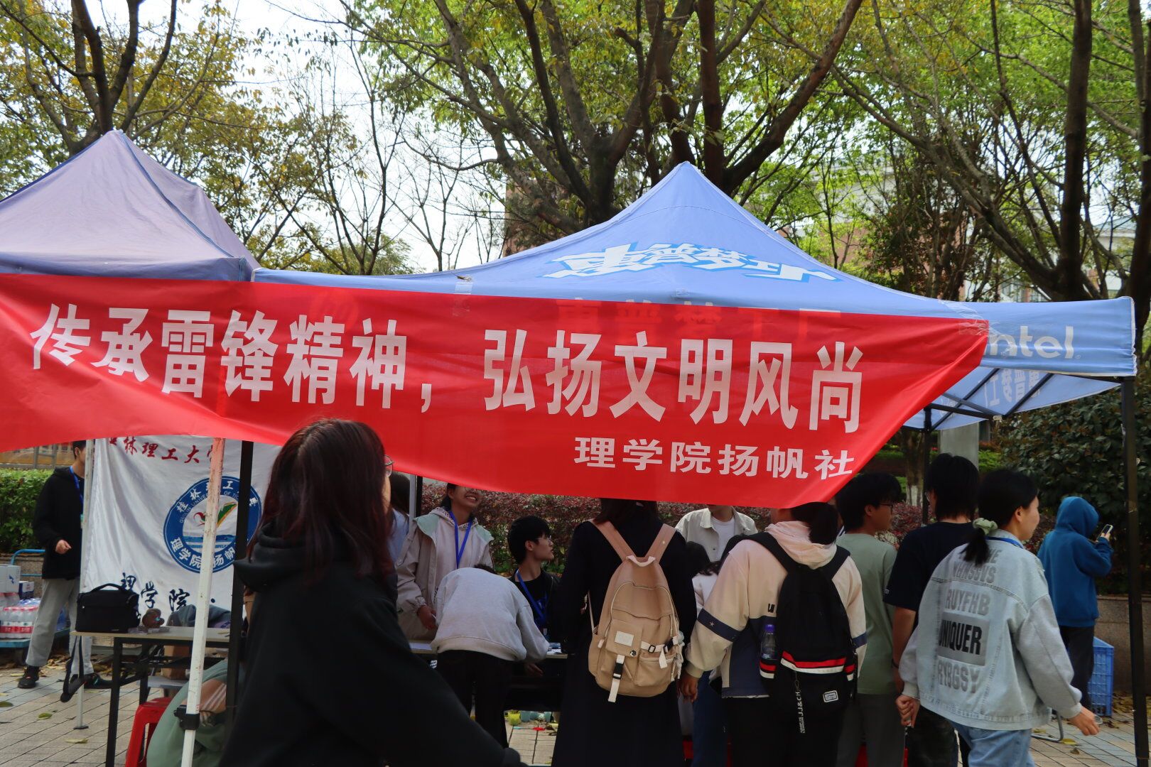 为传承雷锋精神,让同学们了解保护环境的重要性,感受绿色带来的生机,理学院扬帆社于2023年3月12日在一号食堂广场举办以“传承雷锋精神 弘扬文明风尚”为主题的植树节系列活动