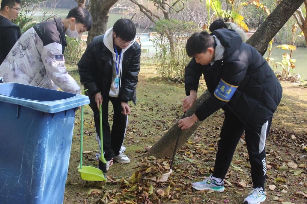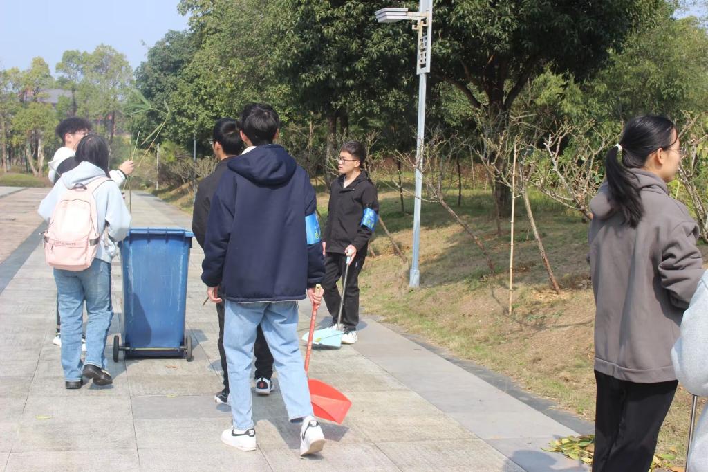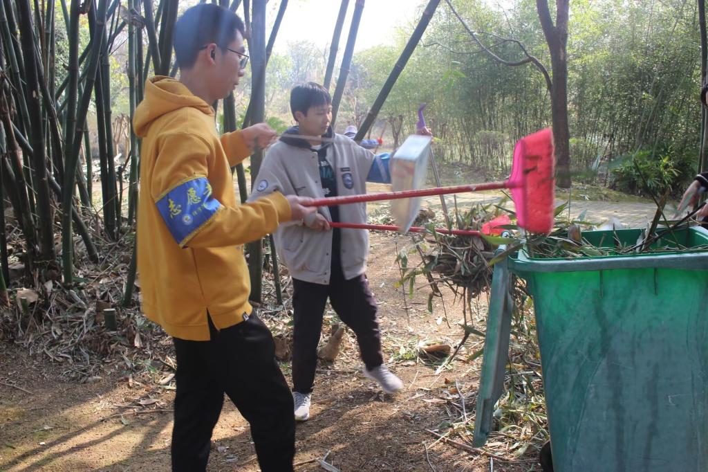 上午10点,全体参与人员带着劳动工具在学校南大门集合,步行前往园博园。活动开始,志愿者们到指定地点进行清洁打扫。清扫过程中,同学们分工明确,认真清理道路、草坪、花园、树林里残留下的树叶及其他垃圾。志愿者们虽然来自不同年级,不同部门,但同学们互相配合,互相帮助,认真清理打扫园博园的每一个角落。在同学们的共同努力下,园博园的环境得到了进一步美化。