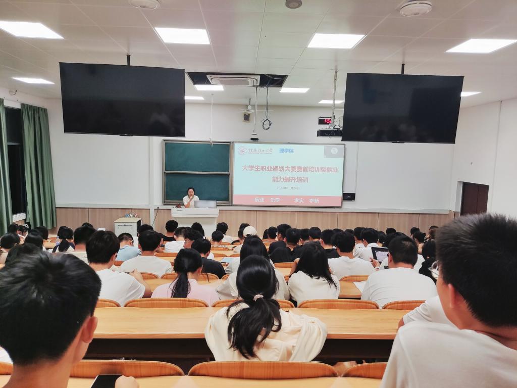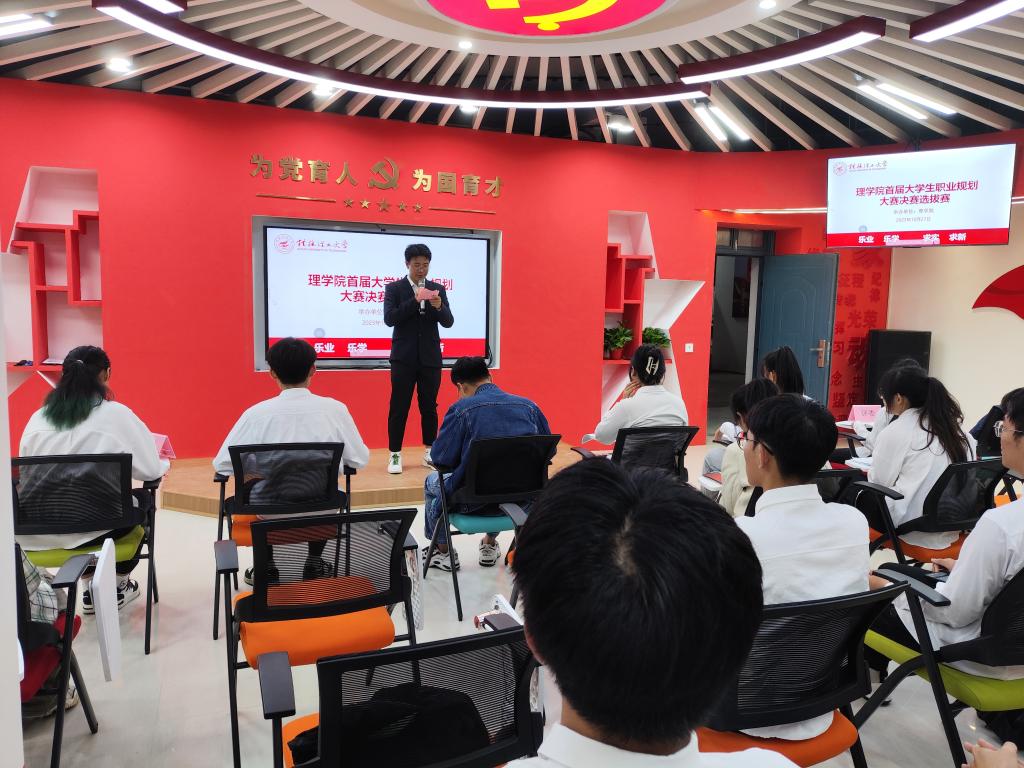 学院高度重视此次比赛,通过成长成才教育课面向学院1500余名在校生召开大赛动员会,举行大学生职业规划大赛赛前培训暨就业能力提升培训,举行理学院大学生职业规划大赛决赛赛前培训。共有50余名同学积极报名参加初赛,经过初赛选拔,13名选手进入大学生职业规划大赛决赛选拔赛,最终7位选手成功入围决赛。比赛过程中,选手围绕自我认知、职业认知、职业决策、环境分析、计划实施等方面进行职业规划PPT设计展示;针对选手的展示内容和个人特点,评委老师们对选手进行提问。最后,学院党委副书记钟立军为本次大赛做总结,钟立军副书记从选手展示内容、选手的台上肢体动作、语言表达力及提问环节选手的应对情况等各方面对选手进行了精彩点评,给学生指引了更加明确的方向。钟立军副书记表示大赛的举办对学生合理规划自身大学生涯有着重要的意义,希望同学们能够通过以赛促学的方式及时制定自己的职业规划并为之付出努力。