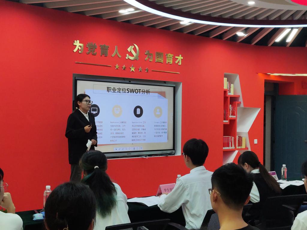 为贯彻落实党中央、国务院关于高校毕业生就业工作的决策部署,加强学校生涯教育和就业指导,增强大学生生涯规划意识,指导其及早做好就业准备,促进毕业生高质量充分就业,10月30日,学院首届大学生职业规划大赛决赛在18栋嘉园思政大讲堂举行。学院党委副书记钟立军、辅导员代表出席活动并担任评委。学院年级100余名学生代表到场观看比赛。