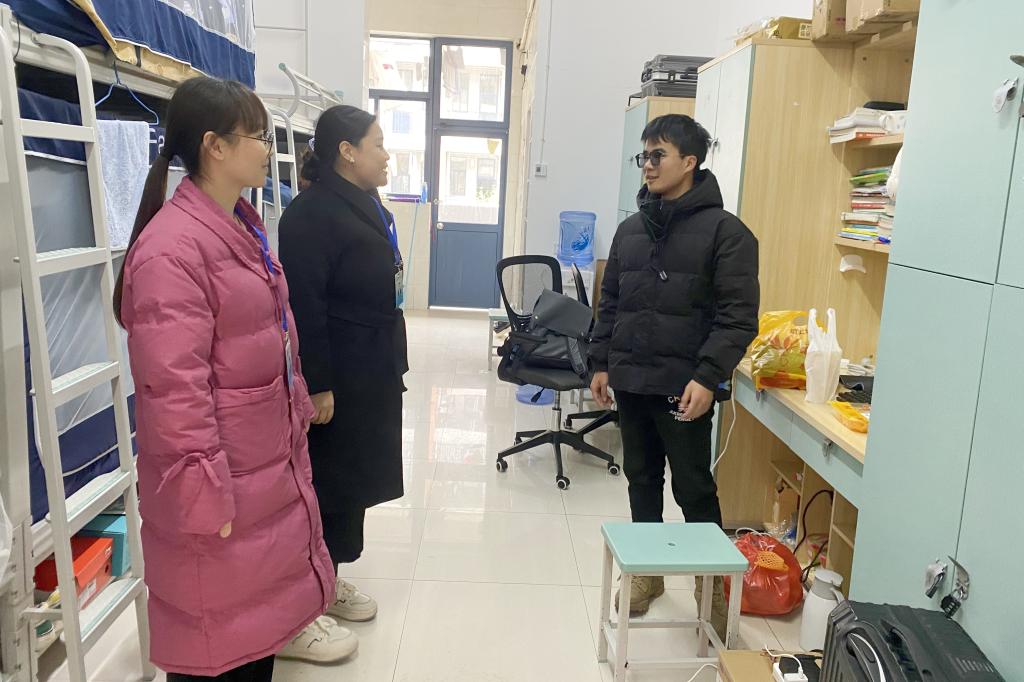 各年级辅导员对学院办公楼、研究生工作间、党员活动阵地、一站式社区和学生宿舍进行了走访检查,对检查中发现的个别问题进行现场指导,对薄弱环节提出整改要求。检查中,重点就宿舍区域消防器材、大功率电器等进行逐条检查,并提醒所有同学做到人走断电,不私拉电线,不用违规电器,不触碰“红线、底线、高压线”。