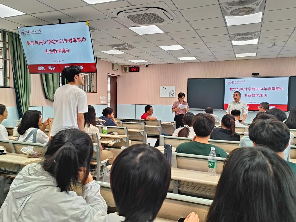 为更全面了解学生学习生活情况,广泛听取学生的意见与建议,切实提升学院办学水平,助力学生成长成才,学院于5月16日组织各年级学生开展了2024春季学期期中教学检查座谈会。会议由学院副院长封全喜主持,学院党委副书记钟立军、副院长唐国强、统计学教研室主任丁少玲、信息与计算科学教研室主任谢海、各年级辅导员及班级学生代表参加了本次座谈会。