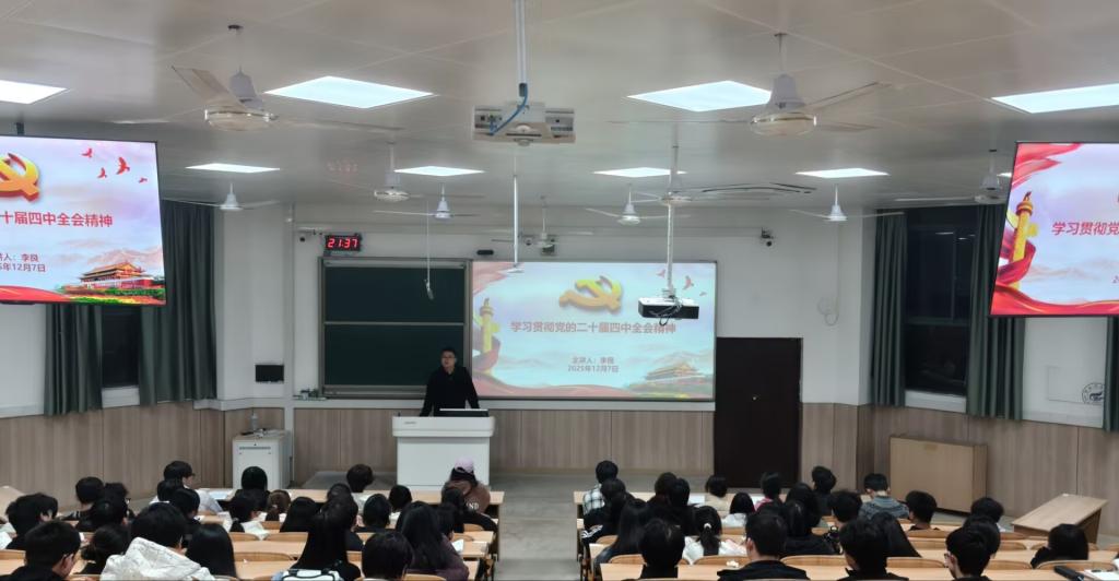 在党的二十届四中全会精神学习会上,李艮围绕全会核心内容,结合青年学生的责任使命,解读了全会提出的新思想、新部署,引导同学们将全会精神融入学习与工作实践,扎实推进学生工作。随后在召开的第十三周团学例会上,学院团学各部门汇报了本周工作进展,明确了下周工作任务,强调要以全会精神为指引,提升服务同学、组织活动的实效,助力学院学风建设与学生成长。
