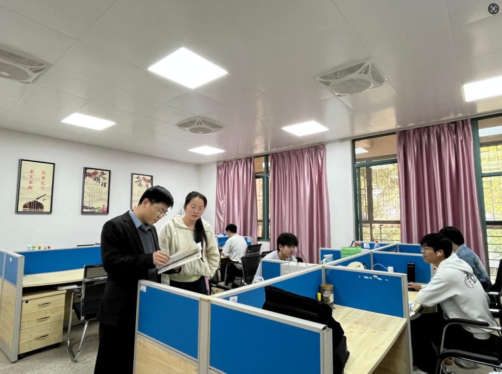 学院党委副书记王洪让带队走访研究生工作室