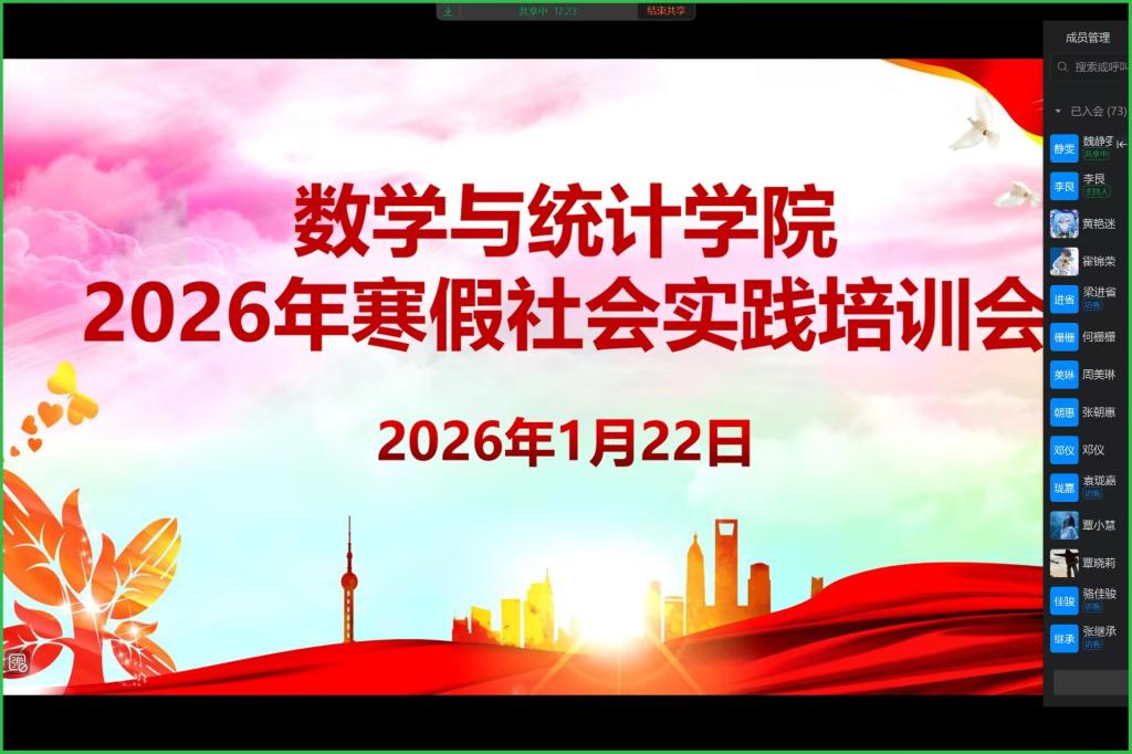 为切实保障寒假社会实践活动安全开展,提升学生安全防范与应急处置能力,1月22日,伟德国际victor·1946源自召开2026年寒假社会实践安全教育培训会。学院团委书记李艮及各实践团成员参加。 会上,李艮围绕社会实践全流程安全要点展开培训,从出行交通安全、住宿消防安全、个人财产安全及突发情况应急处理等方面进行细致讲解,结合典型安全案例分析风险隐患,强调实践期间必须严格执行每天报备制度,强化团队协作意识,确保每位成员的人身与财产安全。 此次培训会进一步夯实了寒假社会实践的安全基础,明确了实践纪律与责任要求。学院将跟进各实践团进展,做好保障与指导,鼓励更多学子走出校园、服务社会,在实干中成长为担当民族复兴大任的时代新人。 会议照片 (一审:彭娇娇,二审:王洪让,三审:江玲)