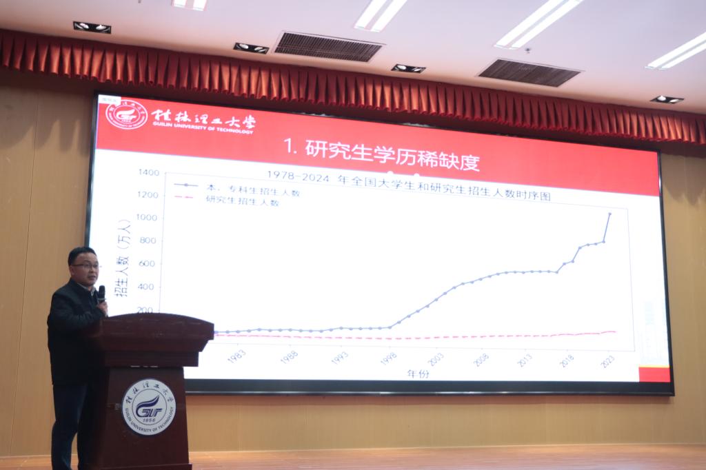 随后,副院长王彬围绕考研核心问题展开专题讲解,从当前考研整体形势、本校学科优势与研究生培养特色入手,详细解读专业备考规划、核心科目复习技巧,针对性解答“为什么考研、报考本校优势、如何高效复习”等学子关切的问题,内容详实、指导性强。