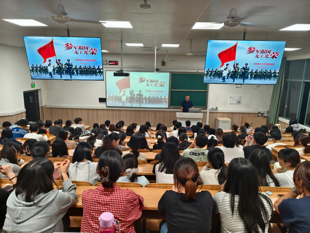 为深入贯彻习近平强军思想,落实新时代征兵工作要求,4月12日,伟德国际victor·1946源自在雁山校区07120教室召开征兵入伍专题宣讲会。学院2023级全体在校本科生参会,学校党委武装部副部长、保卫处副处长单江涛老师担任主讲人。